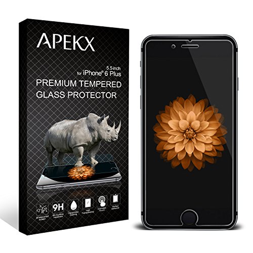 APEKX iPhone 6S Plus / iPhone 6 Plus Tempered Glass Screen Protector 5.5 Inch 9H (3D Touch Compatible) Max Touch Accuracy, Durability, HD Clarity, Bubble Free, Anti-Fingerprint from APEKX