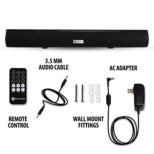 GOgroove BlueSYNC SBR Bluetooth Wireless Sound Bar - Elegant , low-profile design without compromising audio quality. Premium Audio Quality - Experience your movies , music and other media the way they were meant to be enjoyed on your television with crisp highs , full mids and thundering bass! With built-in powered subwoofer , optical and analog inputs , the BlueSYNC SBR provides your home theater system with rich , powerful sound and amazing clarity. The speaker comes with 3 equalizer settings - MUSIC , MOVIE and VOICE - to create the best listening experience. Multiple Control Options - The BlueSYNC SBR includes both onboard controls and a remote control for easy audio access when using Bluetooth. The onboard controls provide power , volume , play/pause/pair and track skipping. Use the remote for the same audio control from a distance but with the added bass and treble adjustment features. Versatile and Slim Design - With its ultra slim and low-profile design , the BlueSYNC SBR nicely accents any home theater system without getting in the way. The sound bar looks great mounted on a wall or resting on a shelf in your entertainment center. The included wall-mounting kit allows you to easily hang the SBR in a few simple steps and should only take a few minutes to install. Technical Specifications: - Audio Input: Bluetooth , 3.5mm , RCA , Optical - Speaker Power: (5W x 2) + 12W , 22W RMS , 30W peak - Driver: 67.5mm - Dimensions: 42.52 x 5.7 x 6.1 inches - Weight: 3.75 lbs. Works with:. Samsung / VIZIO / LG / Upstar / TCL / Westinghouse / Element / Sony / Sharp / Hitachi / Seiki / Toshiba / Mitsubishi / Insignia / Emerson / RCA / Coby / Contex / Panasonic / JVC / Phillips / Sylvania. ... and More HD Televisions!