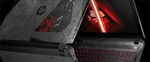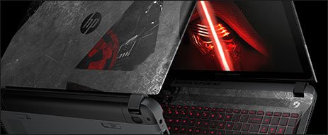 HP Star Wars Special Edition Laptop: Join the dark side with this 15.6" laptop, which features a Star Wars command center, a Death Star recycle bin, behind-the-scenes photo galleries, a Marvel comic and an Aurebesh font. You can store plenty of photos, music and documents on the spacious 1TB hard drive, and enjoy a clear view in dim lighting with the red-backlit keyboard. Star Wars command center Enables you to browse content galleries and adjust the theme settings. You can also select different Star Wars sound schemes for your Windows notifications. Death Star recycle bin Provides a fun icon when the bin is both empty and full. Additional Star Wars perks Behind-the scenes photos, set designs, costumes and models are preloaded. A Marvel desktop icon provides access to the Star Wars comic, and the fonts folder includes the Aurebesh font. Star Wars Special Edition finish in Darkside Black Offers a fun look that showcases your love of the franchise.