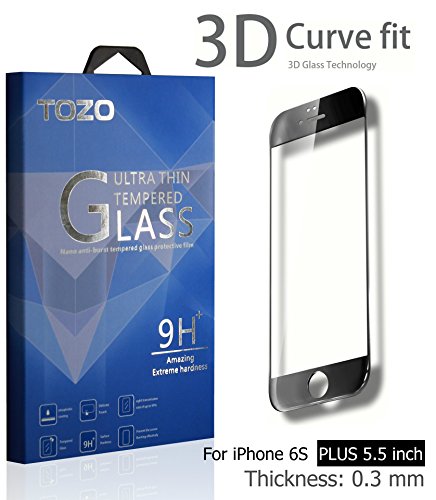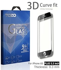 iPhone 6S Plus 3D Screen Protector Glass , TOZO Full Screen Frame Cover [3D Touch Compatible] Premium Tempered Glass 9H Hardness 2.5D Edge Silk Print Super Clear Perfect Fit Screen [ 5.5 inch ] Black from TOZO