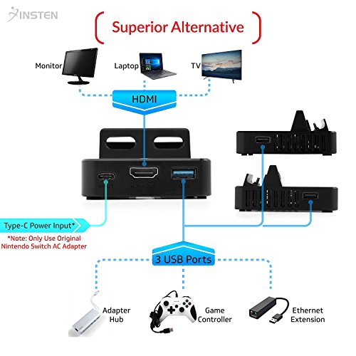 With so many available recently, it is good to have a brand you can trust. The Nintendo Switch Dock, INSTEN Portable Charging Dock Cradle Stand with TV Mode, Screen Toggle Button ,HDMI Port & 3 USB Ports, Black (Cable and Power adapter NOT included) is certainly that and will be a excellent acquisition.