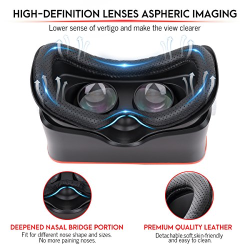HEAT DISSIPATION DESIGN: Excellent heat dissipation with detachable attracted-iron cover and two ventilated holes on the two sides. HD resin Aspherical lenses provide an amazing visual fidelity and outstanding 3D experience. Soft and breathable leather pad keeps your eyes comfortable even after hours watching.