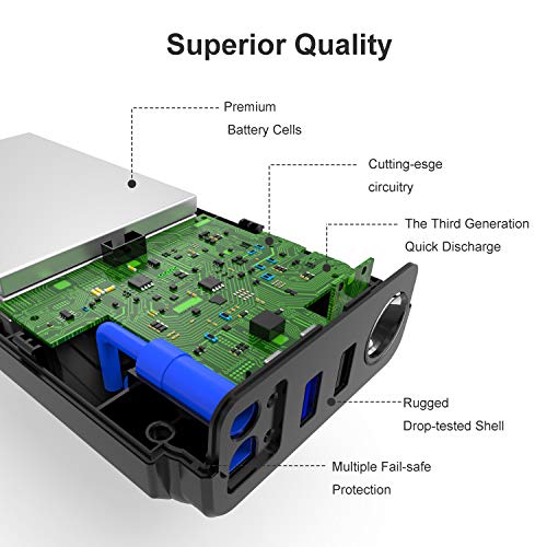 Doubles as Power Bank: Adopts the latest Quick Charge 3. 0 technology to charge smart phones from 0 to 80% in only 35 minutes; Type-C output(5V/3A) delivers the fastest possible charge for Nintendo Switch, smart phone, tablet with Type-C port. 12V/6A DC output with included cigarette adapter conveniently charges your car refrigerator, inflator, and vacuum on-the-go.